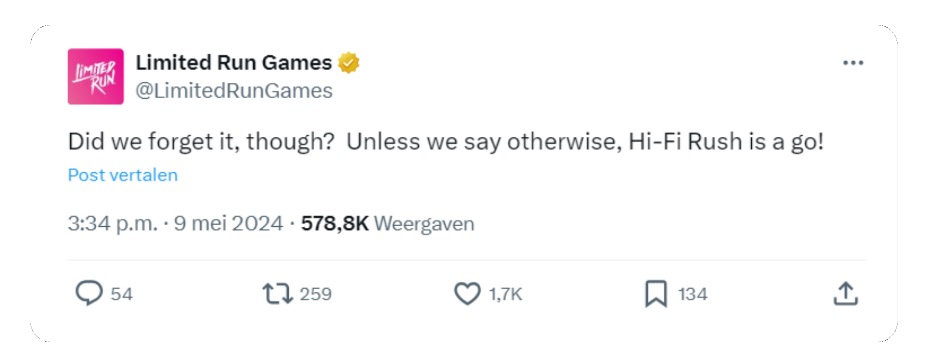 Ondanks de sluiting van Tango Gameworks - de studio achter de ontwikkeling van Hi-Fi Rush - staat een fysieke release van de game nog altijd op de planning. Veel gamers vreesden na de sluiting dat er een streep zou gaan door de release, maar Limited Run Games heeft die angst de kop ingedrukt.